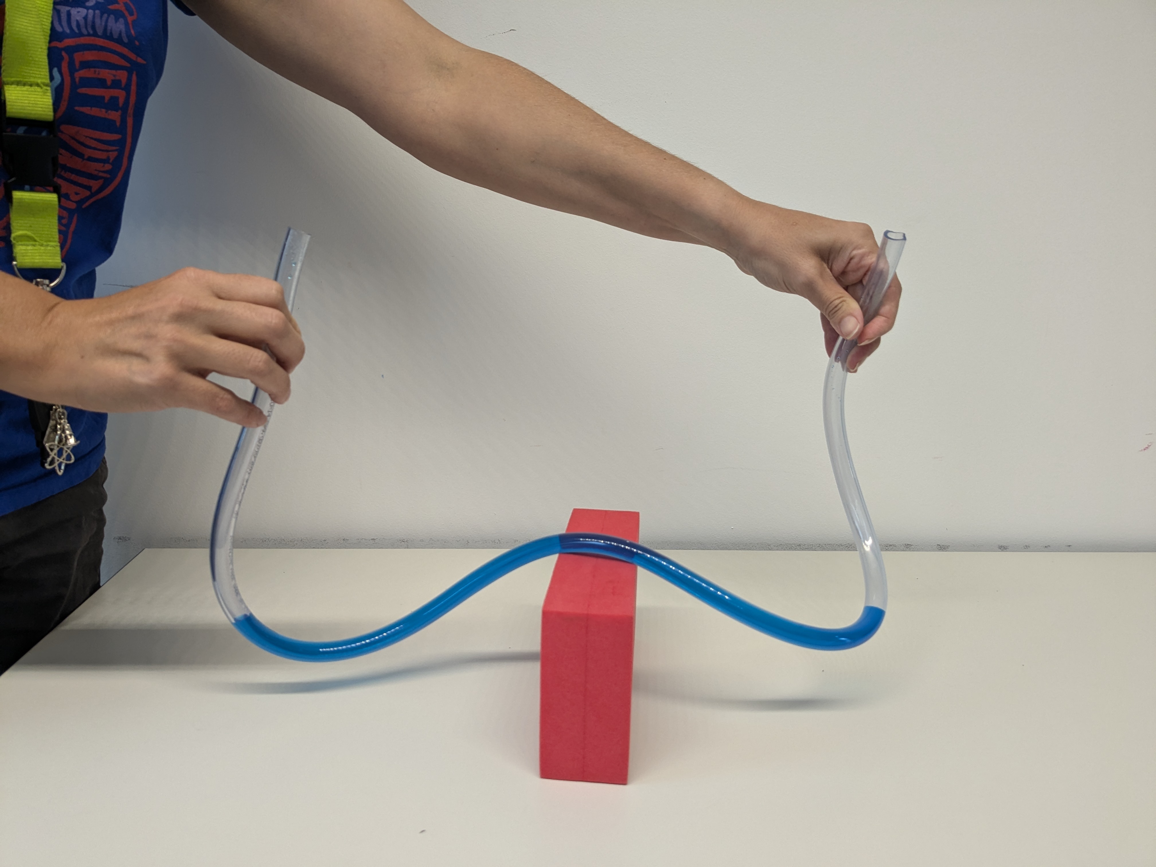 Wie kommt das Wasser in den Wasserhahn? In diesem Workshop beschäftigen sich die Schülerinnen und Schüler mit dem Prinzip der verbundenen Röhren. Anhand von Versuchen zum Wasserstand in einem Schlauch und in zwei miteinander verbundenen Gefäßen beobachten sie, dass sich das Wasser immer auf gleicher Höhe einstellt. Anschließend wenden sie dieses Wissen praktisch an, indem sie eine Pflanze mithilfe von Schläuchen bewässern. So erschließen sie sich das dahinterliegende Prinzip Schritt für Schritt und erkennen die Bedeutung für Anwendungen im Alltag zum Beispiel bei der Bewässerung von Pflanzen oder in Wasserleitungen.